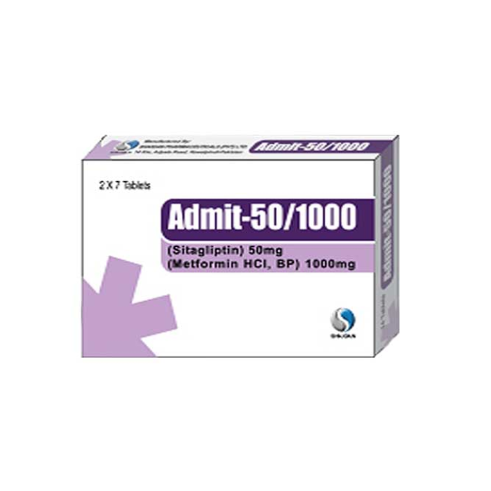 Admit 50/1000mg Tablet is used with a healthy diet and proper exercise to control high blood sugar in patients with type 2 diabetes. Admit 50/1000mg is also effective to prevent sexual dysfunction, kidney damage, loss of limbs, nerve problems, and blindness by lowering high blood sugar.