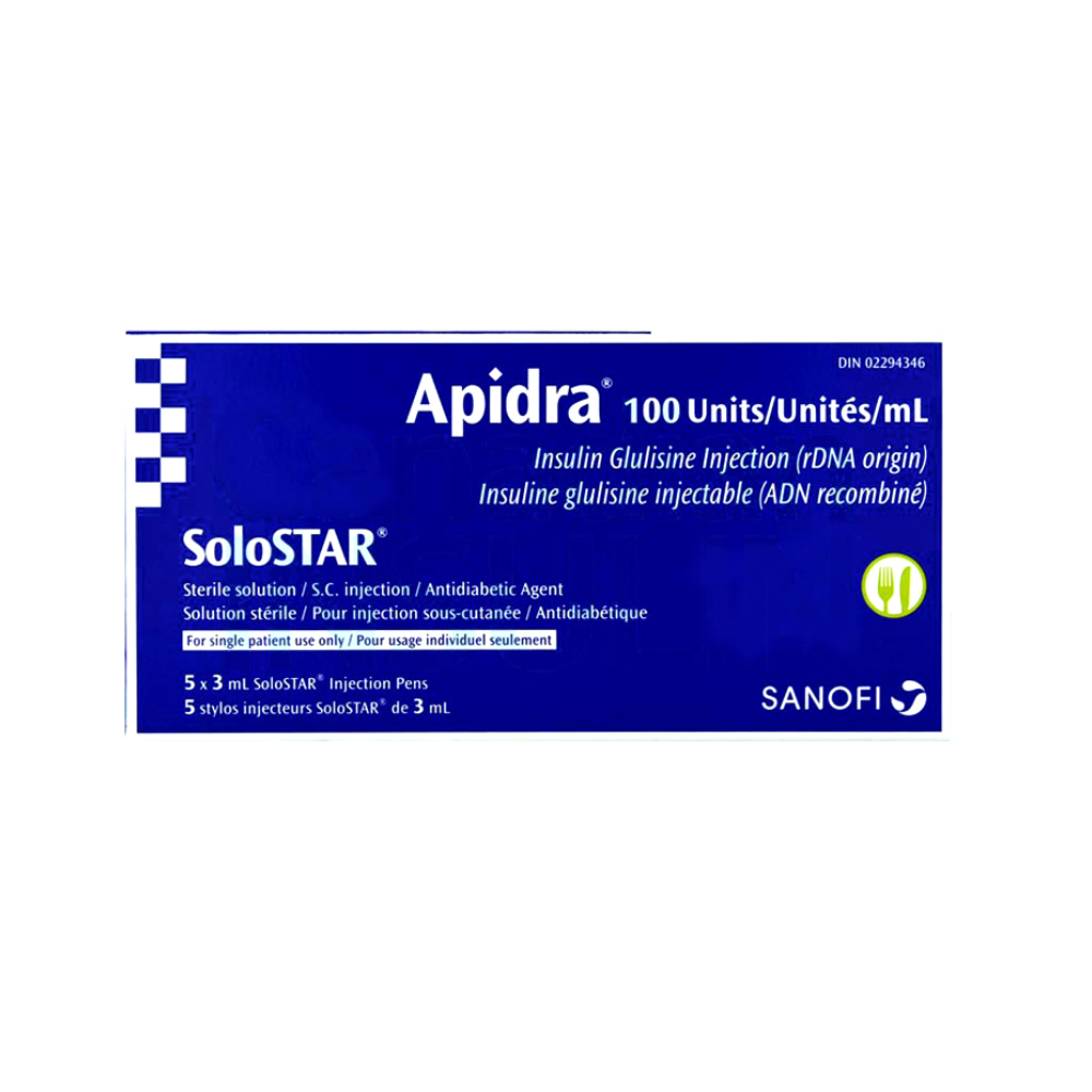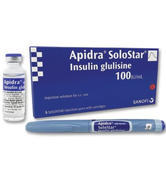 Apidra Solostar 100IU/ml Injection is a fast-acting form of insulin that helps lower blood sugar levels after the intake of food. Prevents the risk of having severe complications of diabetes. It stimulates the recovery of sugar in muscle and fat cells and thus suppresses the production of sugar in the liver.