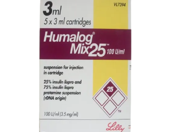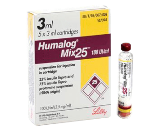 Humalog Mix 25 100IU/ml Cartridge 3ml belongs to the class of medications called ‘antidiabetics’ primarily used to improve blood sugar control in adults with diabetes mellitus. Humalog Mix 25 100IU/ml Cartridge 3 ml is a combination of Insulin lispro and insulin lispro protamine.