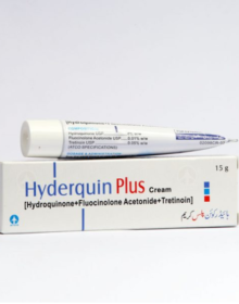 Hyderquin Plus 15g Cream treats melasma, a condition of the skin that causes hyperpigmentation of the skin. It can help with swelling, redness, and itching that may be caused by eczema, allergies, and dermatitis. Sometimes Hyderquin Plus 15g can also help patients with acne vulgaris, facial wrinkles, and facial skin roughness. Hyderquin Plus 15g is a combination of three different drugs.