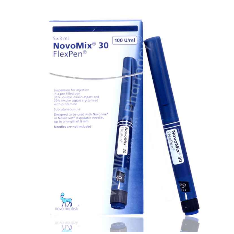 Novomix 30 Flexpen is an insulin analogue with rapid-acting as well as intermediate-acting effects. This modern insulin is an improved version of human insulin. This prescription medication is used to treat diabetes in adults and kids aged 10 or above.