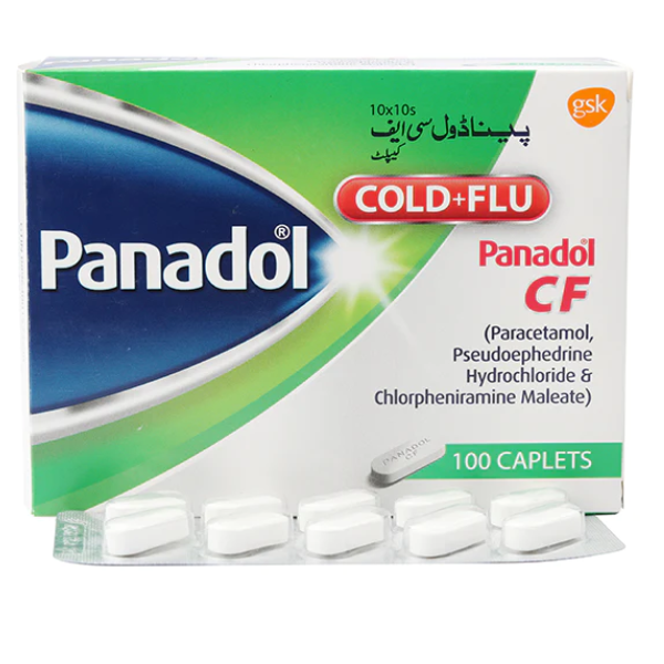 Panadol Cold and Flu Caplets are useful for the temporary relief of the following cold and flu symptoms: blocked and runny nose, headache and body ache, fever, sinus and pain relief, congestion, sneezing, itchy, and watery eyes. Its active ingredients are dextromethorphan hydrobromide monohydrate, paracetamol, and phenylephrine hydrochloride.